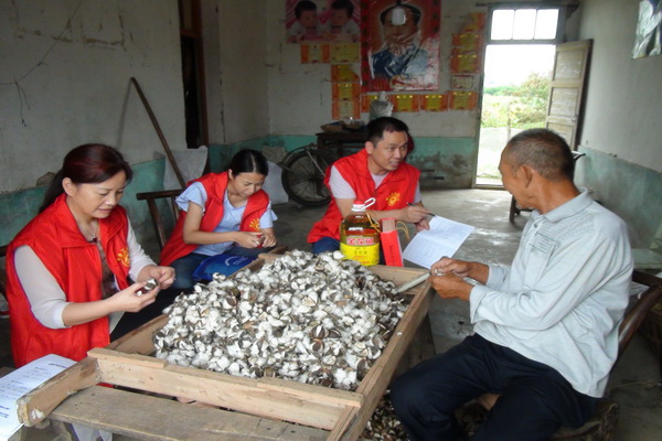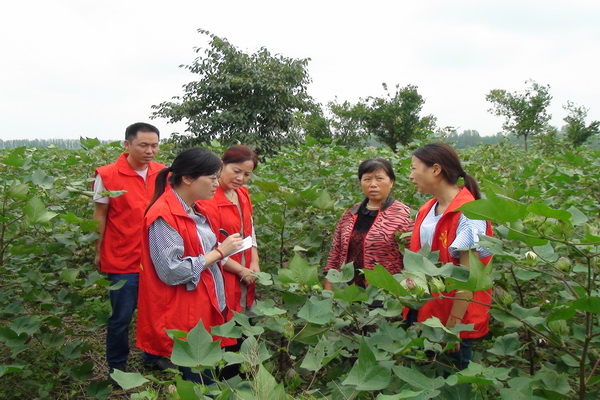 工会党员志愿者还来到田间地头,仔细了解困难户农作物生长情况,就如何调整产业结构、加盟农民合作社等与困难户进行交流。