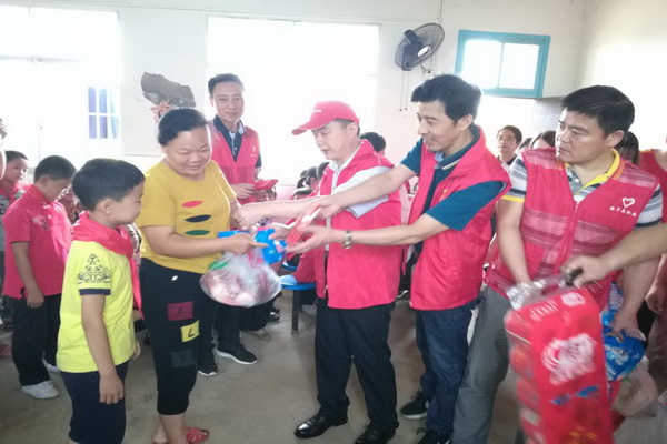 “好孩子,要努力学习,长大后做一个对社会有用的人,这是奶奶一份心意。这是一本雷锋的故事送给你,希望你做一个雷锋式的好孩子。”在黄狮嘴小学食堂,安乡县八旬道德模范、荣获湖南省优秀共产党员称号的杨国英老人给一位特困学生送上了300元爱心助学金。该校共有学生73人,其中,大部分为留守儿童,建档立卡困难学生有28人。志愿者为困难学生共送上了8400元爱心助学金。志愿者还为应邀而来的28位困难学生家长或监护人送上了一份内有粽子、食用油、面条、洗衣粉、猪肉、洗洁精、卫生纸等爱心物资。