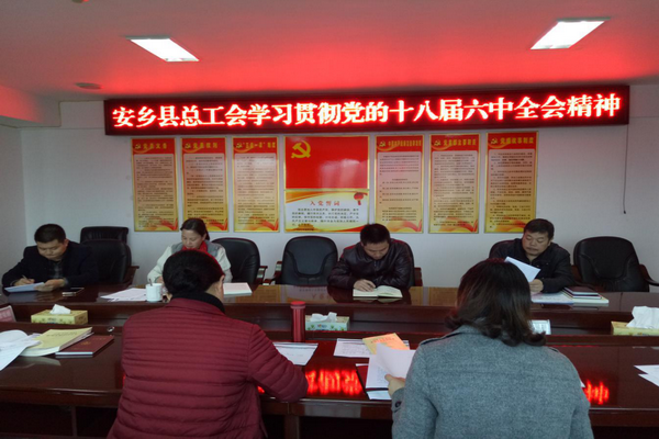 会议要求,县总工会要认真贯彻落实十八届六中全会精神,扎实推进工会系统党的建设各项工作。要严肃党内政治生活,把《关于新形势下党内政治生活的若干准则》和《中国共产党党内监督条例》作为学习重点,严明党的政治纪律和政治规矩,严格党内组织生活,进一步增强“四个意识”,始终在思想上政治上行动上同以习近平同志为核心的党中央保持高度一致。要持之以恒抓好作风建设,坚持抓常、抓细、抓长,进一步巩固作风建设成果,推动中央八项规定精神和省、市、县委若干意见落到实处,深入基层、深入职工群众,千方百计为职工群众办实事、解难事,打通联系服务职工群众的最后一公里。